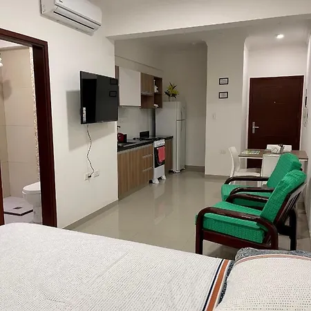 Condominio Las Palmas II Villa Fatima features a kitchen. The nearest airport is El Trompillo, 5 km from Condominio Las Palmas II Villa Fatima, and Transportadora 26 de Enero bus station is 550 metres away. A terrace overlooks the city, ensuring the most enjoyable stay.